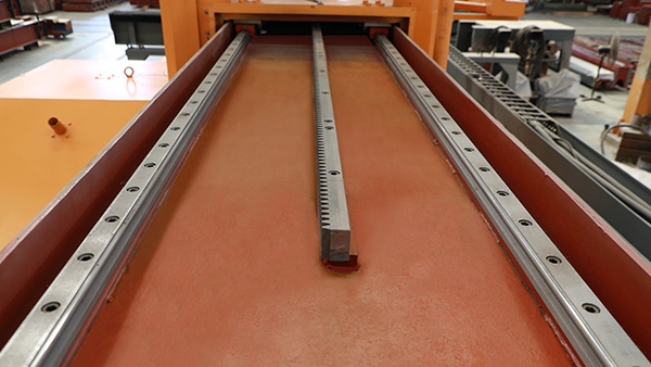 1、大梁采用外模鋼板+工業(yè)級(jí)鋼筋混凝土結(jié)構(gòu),左右行走采用進(jìn)口直線導(dǎo)軌導(dǎo)向,行走更靈活、切割的板材平整度好。