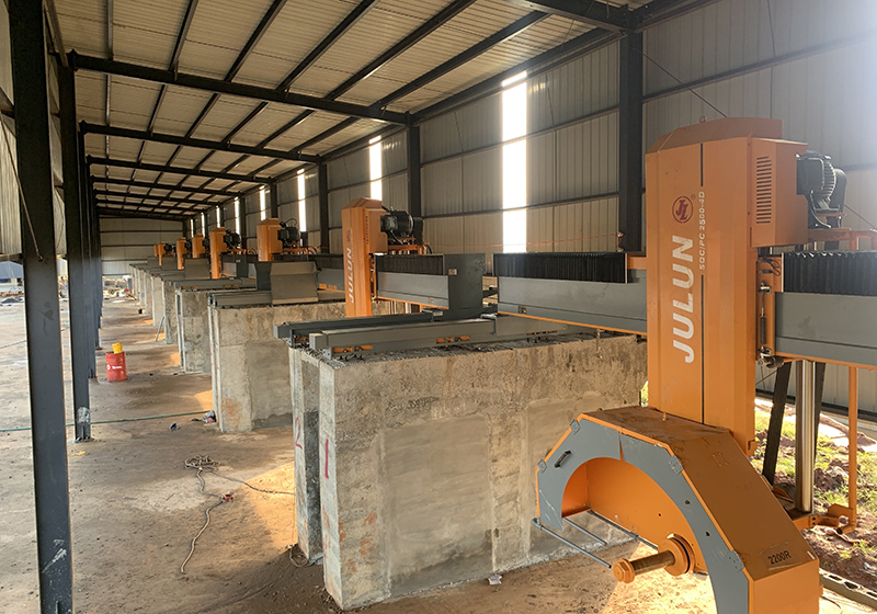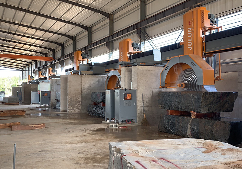 1、全鑄件大梁結構,左右走刀采用變頻器控制,可根據石材材質進行調速,行走更靈活、切割的板材平整度好。